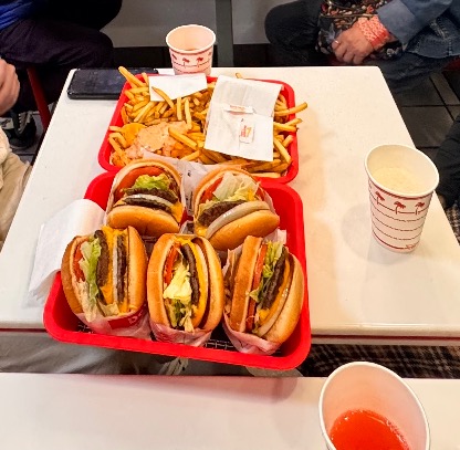 웨스트 할리우드 지점은 항상 붐비지만, 차에서 주문하고 픽업할 수 있다는 점에서 편리합니다. 제이홉이 방송에서 보여준 ‘차 안에서 햄버거 먹기’가 바로 이 드라이브스루 경험의 핵심! 현지인들도 야식으로 즐겨 찾는 곳이라서, 늦은 밤에도 차들이 줄 서 있는 걸 흔히 볼 수 있습니다. 대낮이든 한밤중이든 사람들이 바글바글한데 그 이유는 단순하다. 신선한 재료, 주문 즉시 조리되는 패티, 그리고 특제 스프레드 소스로 완성된 인앤아웃 버거만의 맛 때문입니다.
