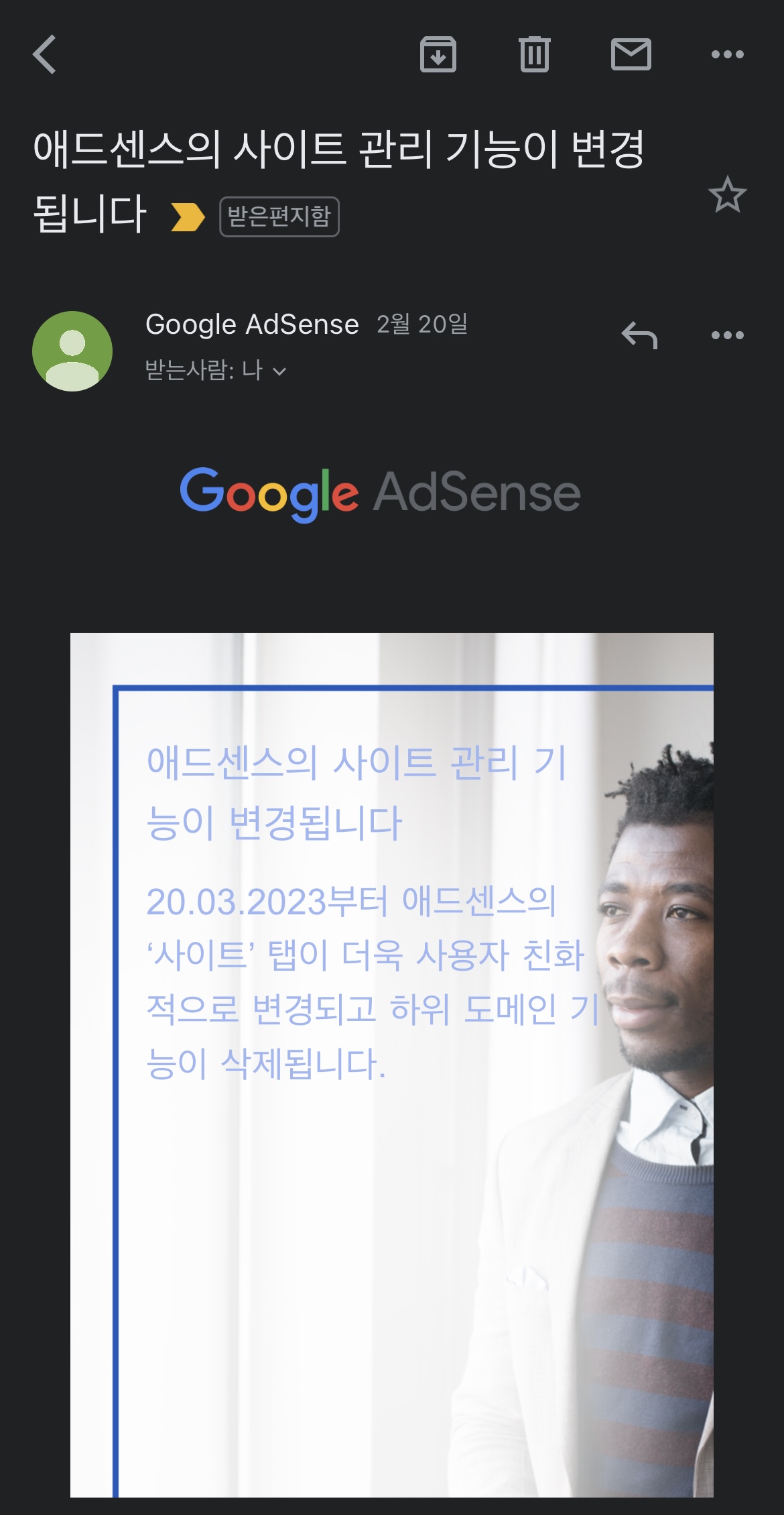 3월 20일부터 애드센스의 사이트 관리기능이 변경된다는 내용입니다.