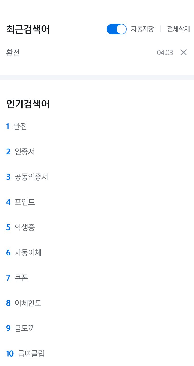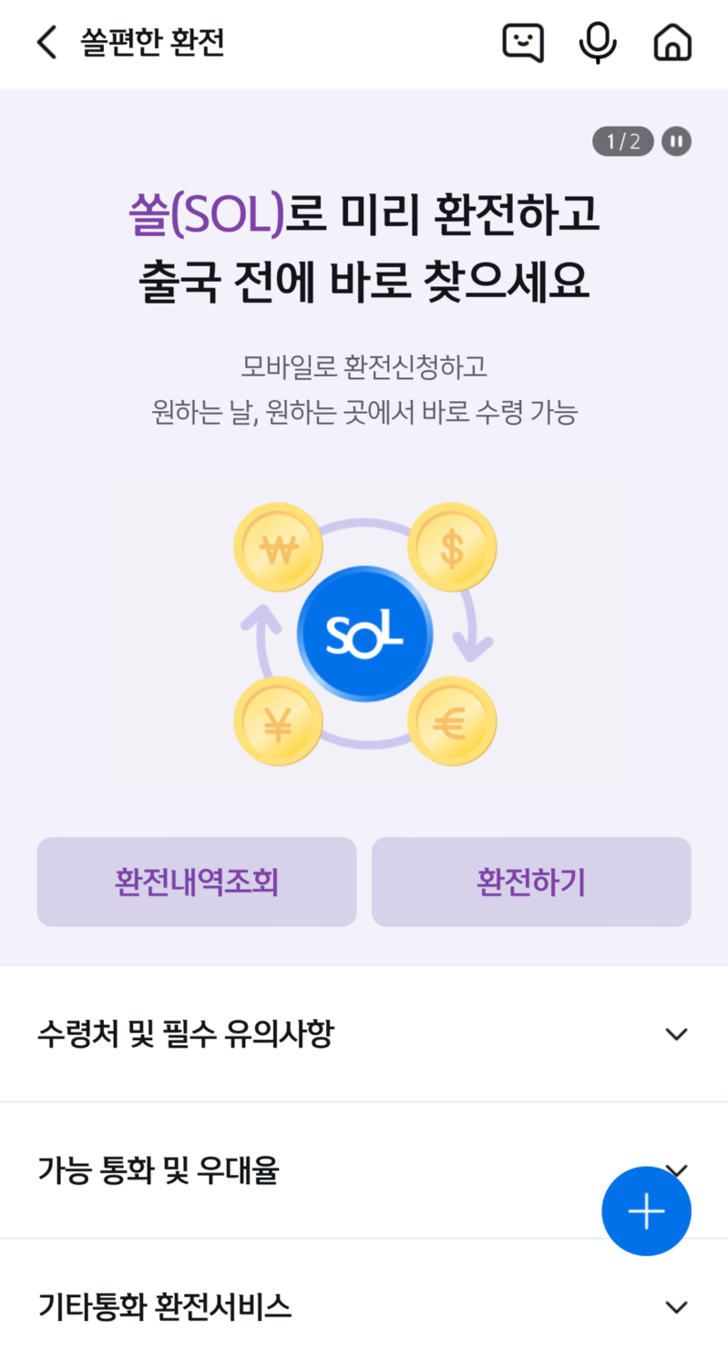 쏠에 들어가서 검색을 누르니 인기 검색어 1위가 '환전'이네요