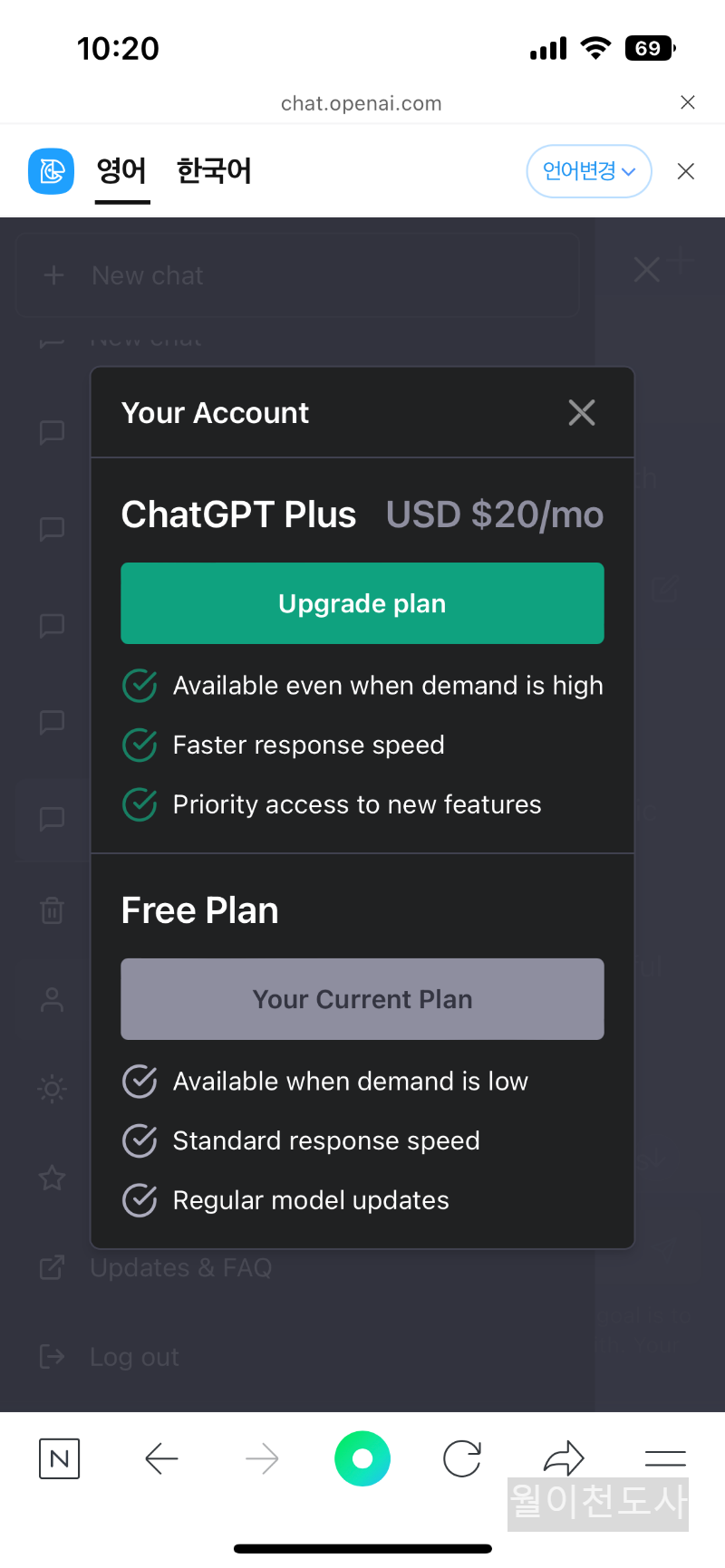 - 사용량이 많은 시간대에 더 빠른 응답 시간과 안정성을 제공하는 구독 요금제인 ChatGPT Plus를 시범 운영 중입니다. 물론 무료 요금제인 ChatGPT는 계속 이용하실 수 있습니다. -